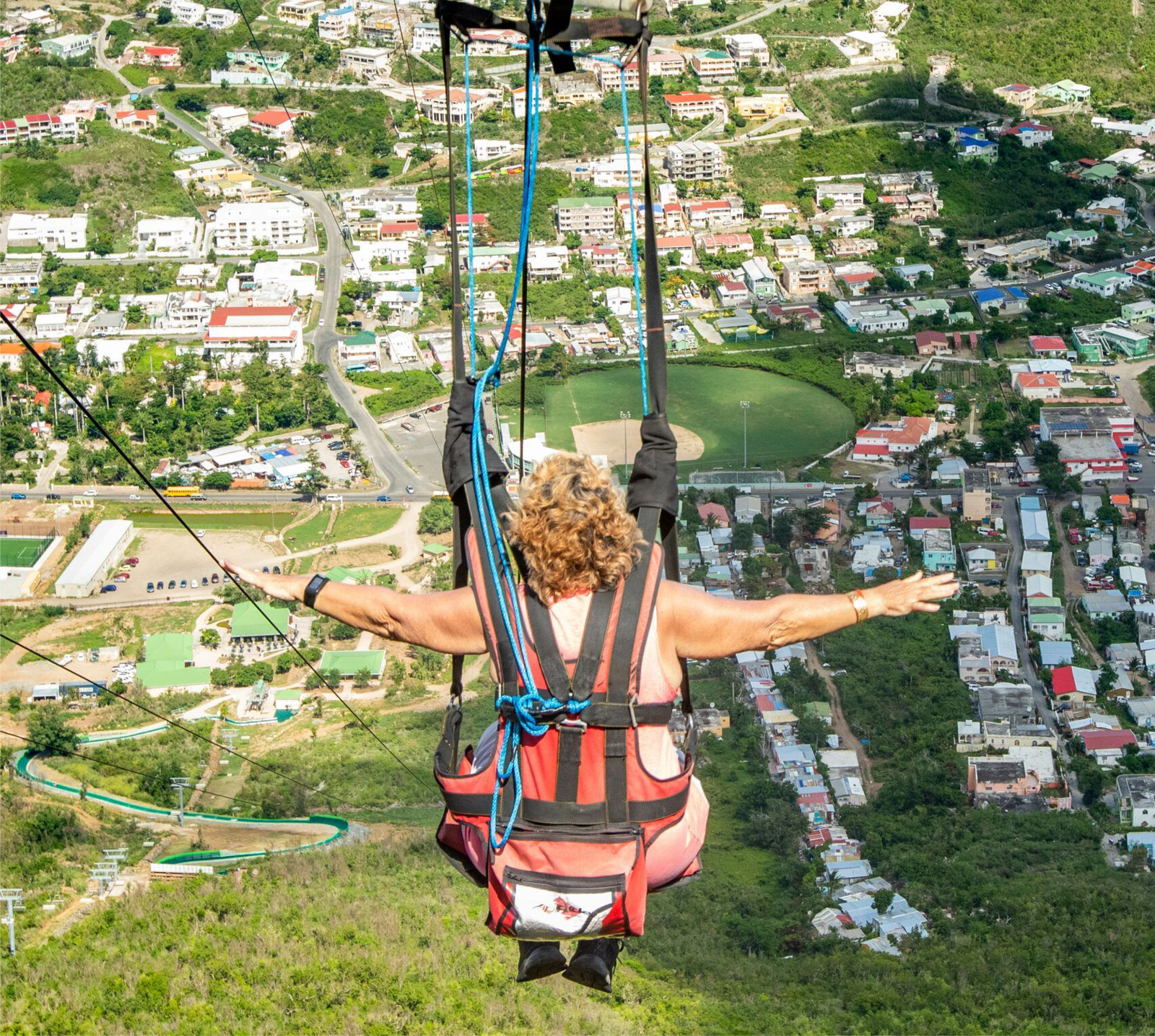 The Flying Dutchman in Sint Maarten is the steepest zip line in the world, offering an adrenaline-pumping ride from the top of Sentry Hill down to the base at Rockland Estate. Strapped into a secure harness, riders soar down the mountain at thrilling speeds while taking in breathtaking panoramic views of the island and the Caribbean Sea.